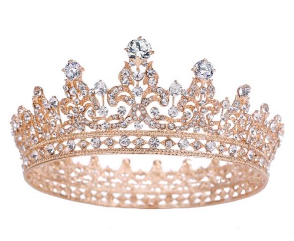 2 1/5 Inch Height Gold Plated Crystal Rhinestone Round Crown