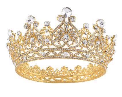 2.6Inch Height Clear Rhinestone Gold Plated Large Pageant Crowns Headdress Crown