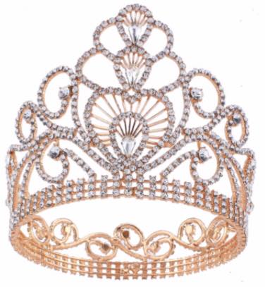 4 1/2 inch Height Rose Gold Plated heart design 3 rows Crystal rhinestone round bridal tiaras crown