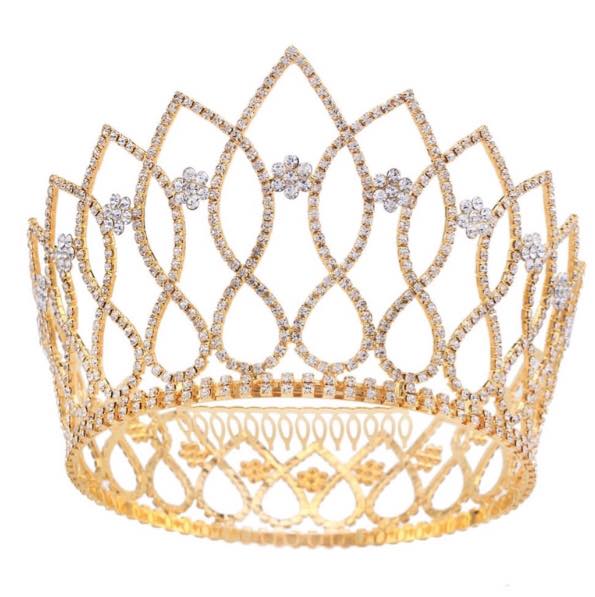 4 Inch Tall Large Gold Tone Rhinestone Crown with Hair Comb