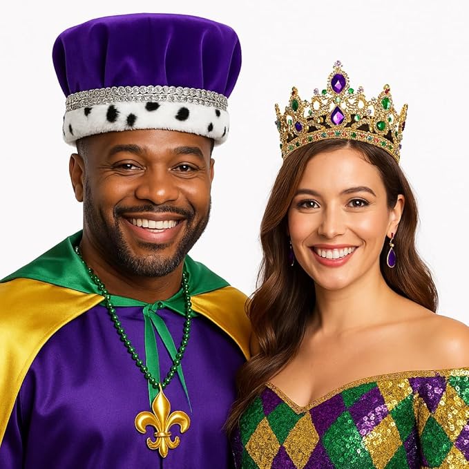 High-Quality Construction: Made from durable materials, this Mardi Gras king crown is built to last through countless performances and events. Features a hidden collapsing mechanism for easy storage and for amazing your audience!