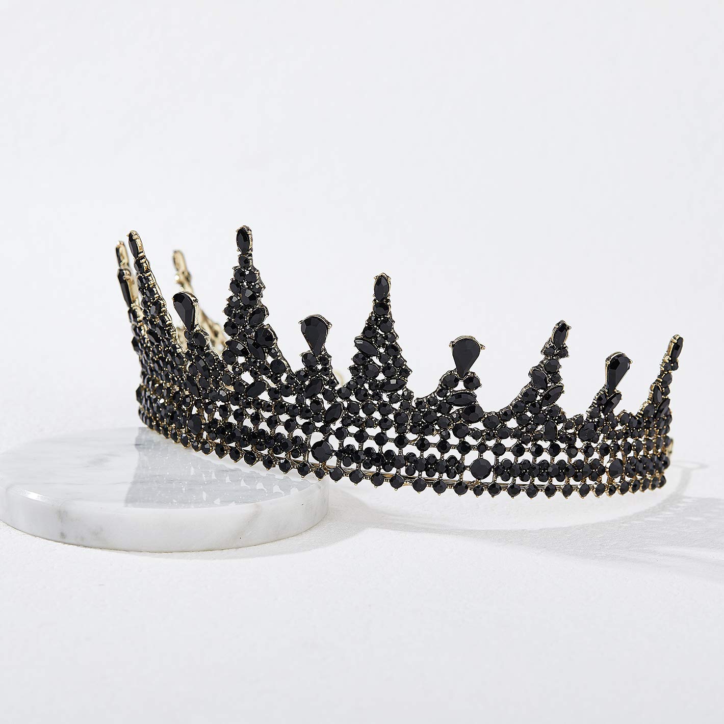 BLACK CROWNS – Black Jeweled Baroque Tiara Crown for Women