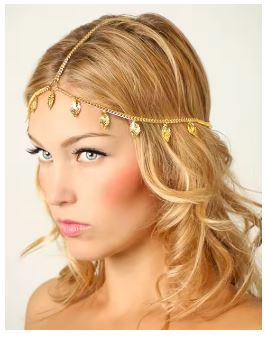 Stylish Leaf Chain Headband: This exquisite chain headband adds a touch of elegance to any bridal ensemble or special occasion outfit. Its intricate gold leaves and vintage-inspired design make it a luxurious and lightweight headgear choice.