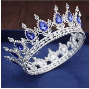 Royal Queen Rhinestone Crown – SILVER BLUE