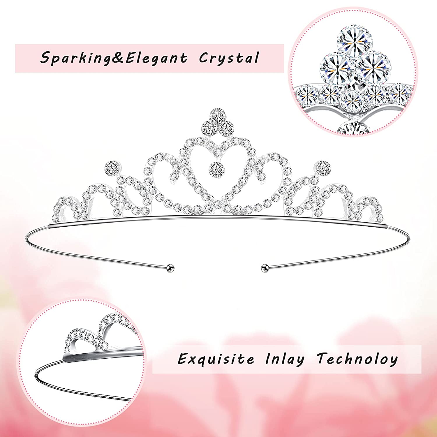 - Material details: our girls rhinestone crown headband headpiece is mainly made of alloy, and its appearance is inlaid with shiny rhinestones, which are made of acrylic, they are very firm and will not easily fall off after long-term use,which can not cause harm to hair and skin, so you can use it without worries