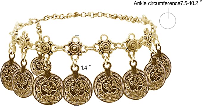 ★★★ Size of this pair of foot jewelry: Total length: 10.6”, Coin diameter: 0.7”. Come with a pair, 2pcs.