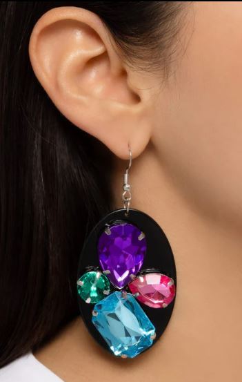 Part of the striking Black collection, these exquisite earrings are essential for anyone eager to make an impression. The pronged gems display a dazzling array of cuts and hues, cascading beautifully to captivate attention. Their modern oval shape sets them apart, while the lightweight fishhook fittings ensure comfort for all-day wear.