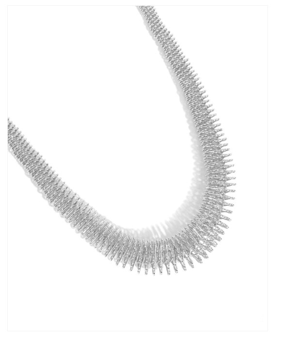 Spanning from glistening silver cap fittings, whimsically woven pieces of silver gradually increase in size, coalescing below the neckline for a trendy, trenchant display. Features an adjustable clasp closure.