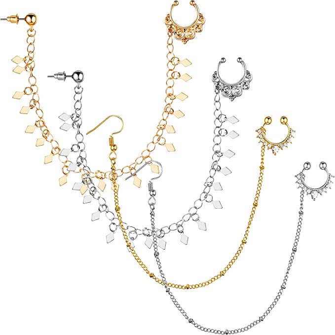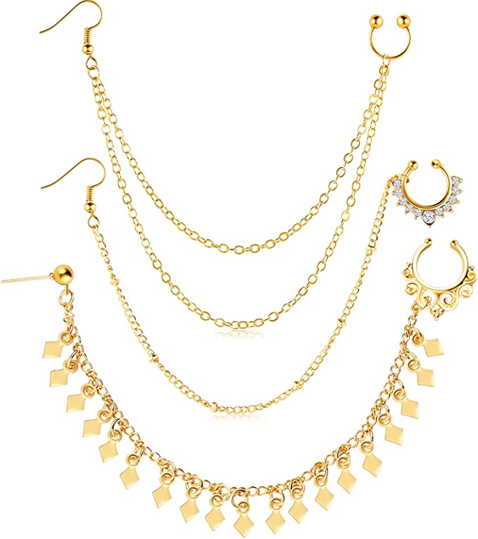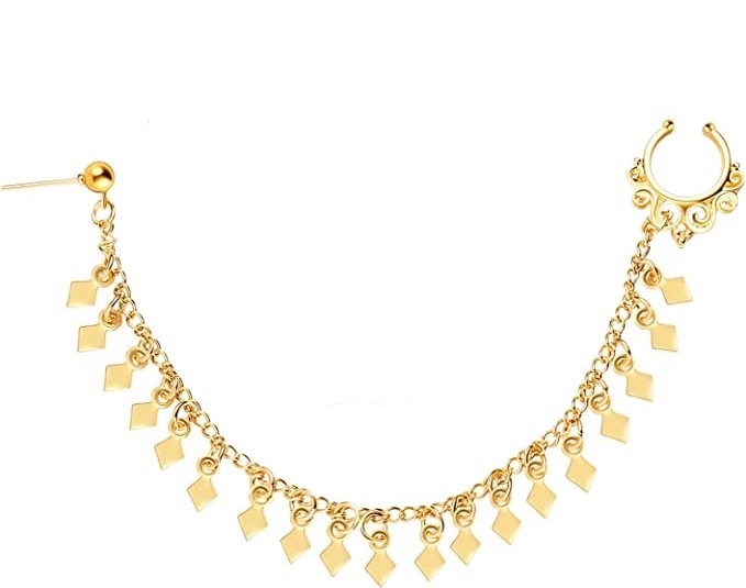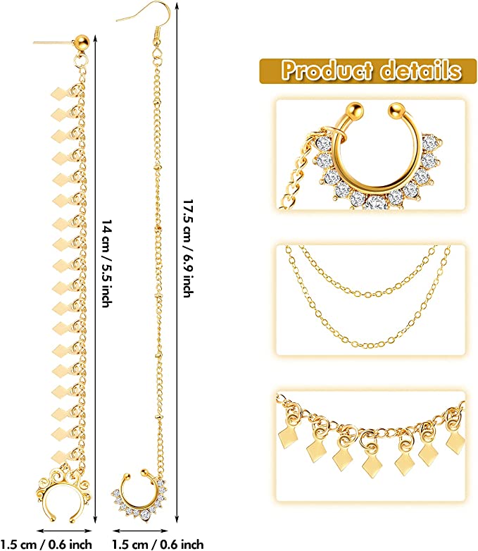 Suitable for many occasions: the non piercing nose rings with chain comes with reliable quality, exquisite workmanship and compelling style, adds more charm to your costumes, ideal for wedding, Halloween party, performances, photo shooting or daily use