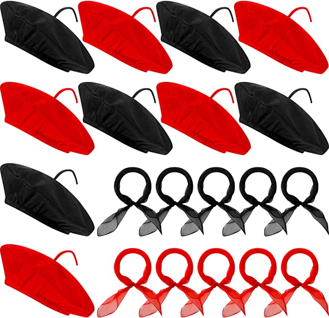 The painter beret and square neck scarf are ideal for French themed party, painter party, dance and stage show, disco party, rock and roll, birthday party, cosplay party and other themed party.