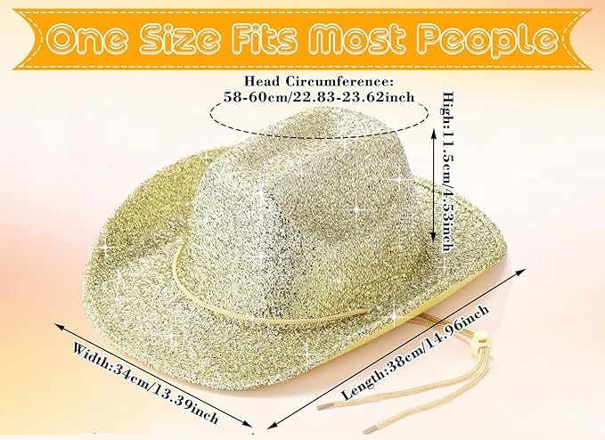The cowgirl hat for women measures approx. 38 x 34 x 11.5 cm/ 14.96 x 13.39 x 4.53 inches with an adjustable neck drawstring design, thus better fitting most people’s head, won’t easily fall off and making it comfortable to wear.