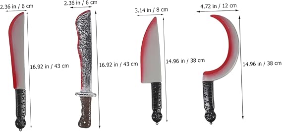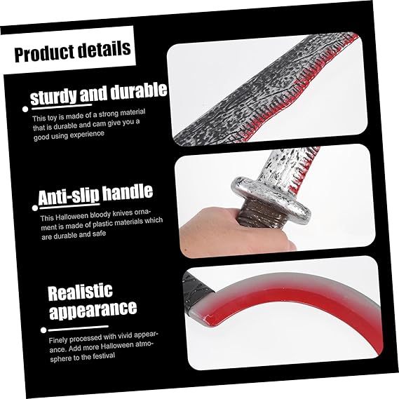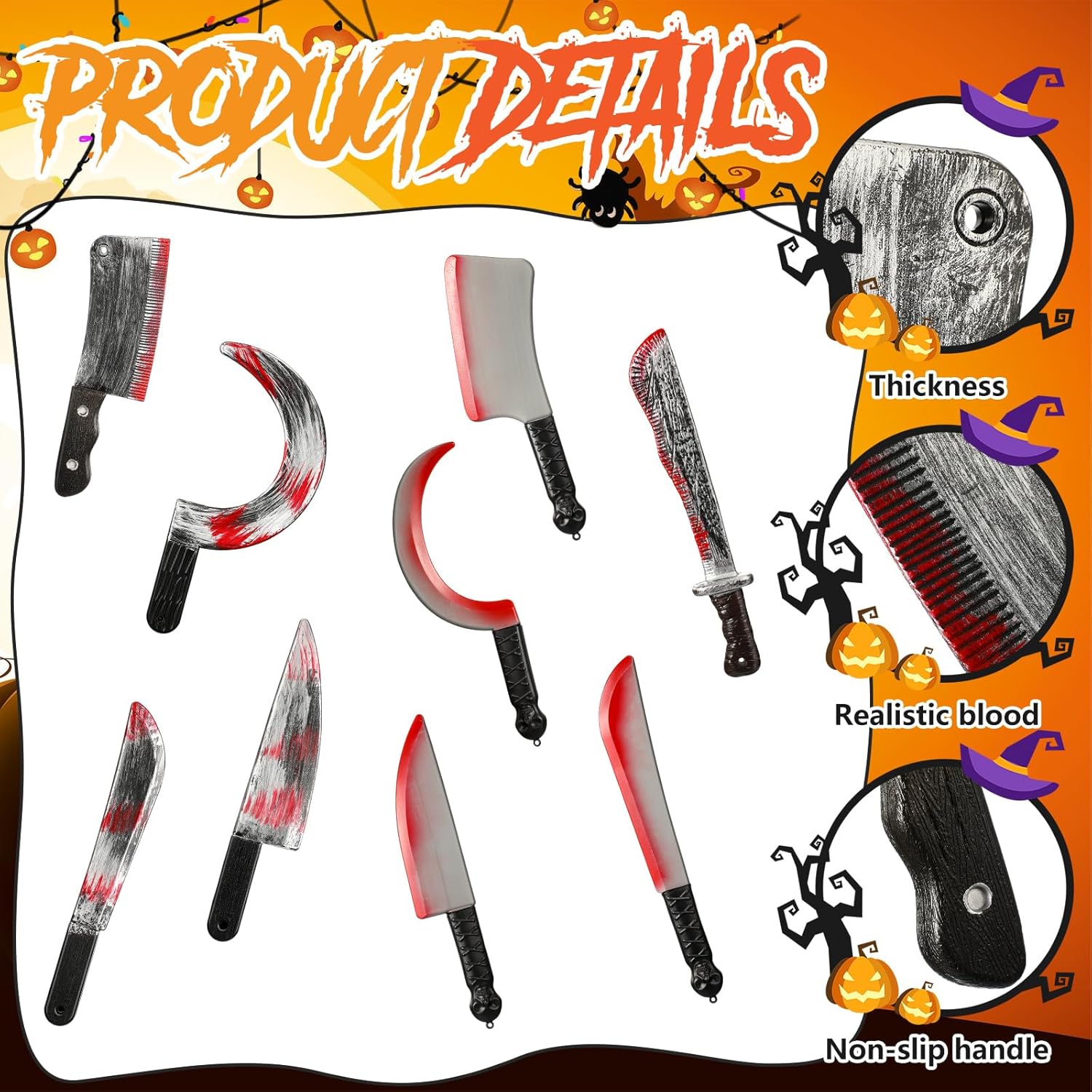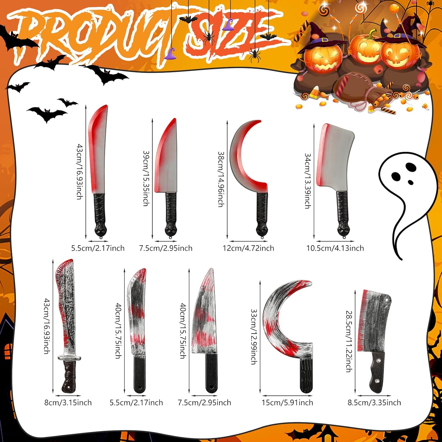 Halloween toy knives are designed with fake blood, which looks realistic and scary, full of spooky Halloween atmosphere, adding more fun to your parties