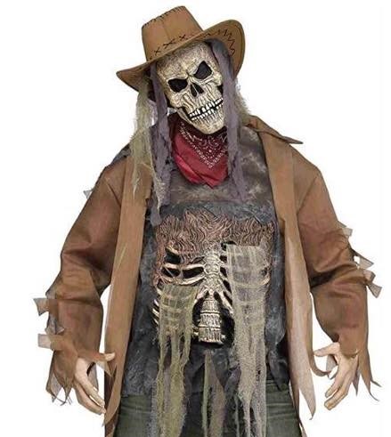 INCLUDES: Top with attached bone chest and faux jacket, hat with gauze, and mask as featured