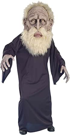 The Troll Costume for Adults features an oversized troll mask that has an old wrinkled man face with age spots and an ugly scraggly bears. Also included is oversized foam troll hands and a black robe to complete the look.