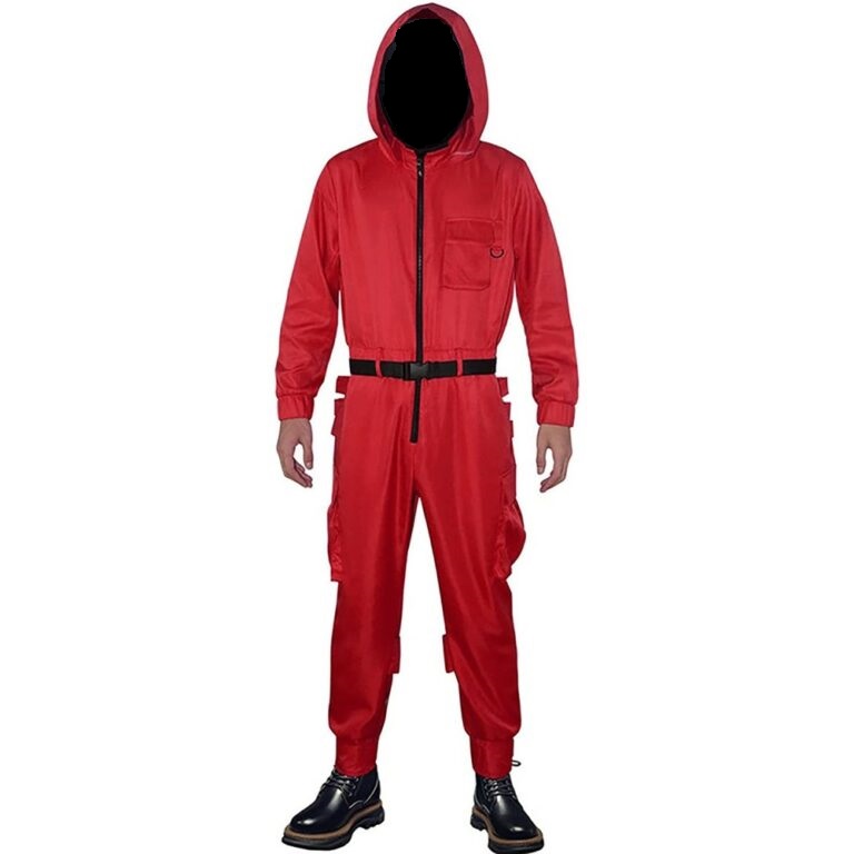 Package Include – 2PCS Halloween Costume set includes one-piece red jumpsuit + game belt