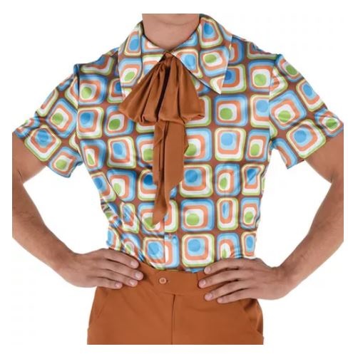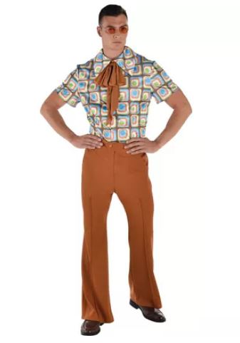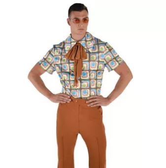 Be your hippest self, 60s style, with the Hip 60s Gentleman Costume! This groovy outfit features a colorful printed shirt with an oversized collar, burnt orange bell bottom slacks, and a matching ascot necktie.