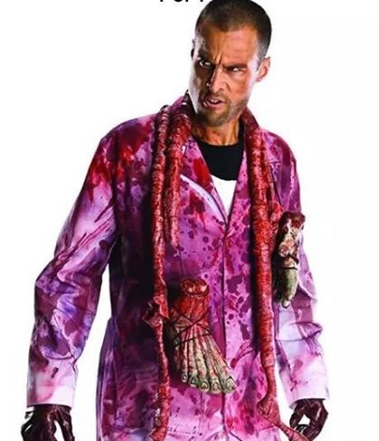 INCLUDES: bloody Lab coat, fake blood packet, and molded zombie parts.