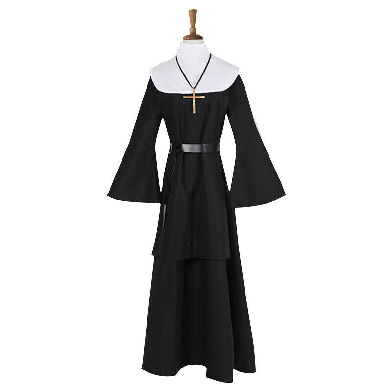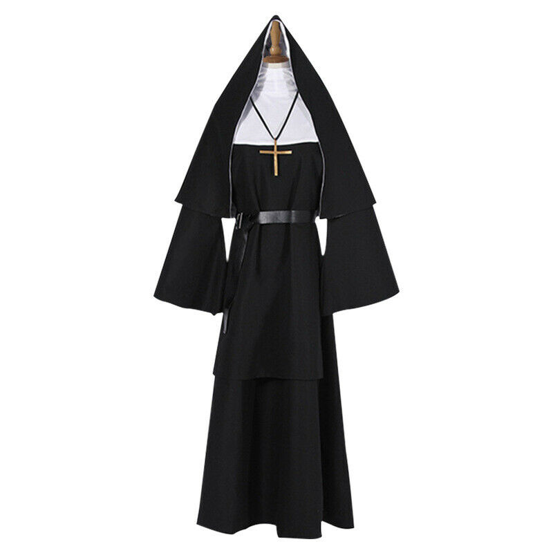 INCLUDES: Costume gown, habit (hood with white veil), belt and cross chain