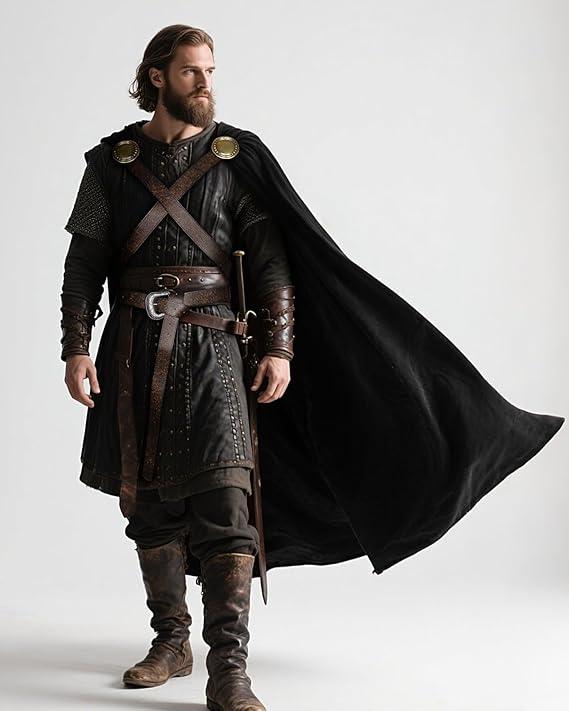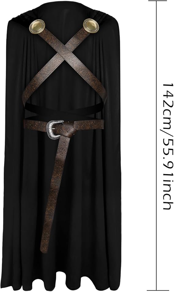 Adjustable Secure Fit: Cloak Length 142cm/55.91in. The self-adjusting leather belt and vintage metal brooches ensure the cloak stays firmly in place during dynamic movements, whether battling frost giants or dancing at a medieval banquet.