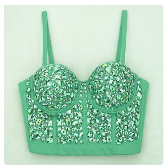 Be the first to review “CORSET BUSTIER CROP TOP – HAND SEWN GREEN AB-1 Acrylic Rhinestone Bustier Crop Top” Cancel reply