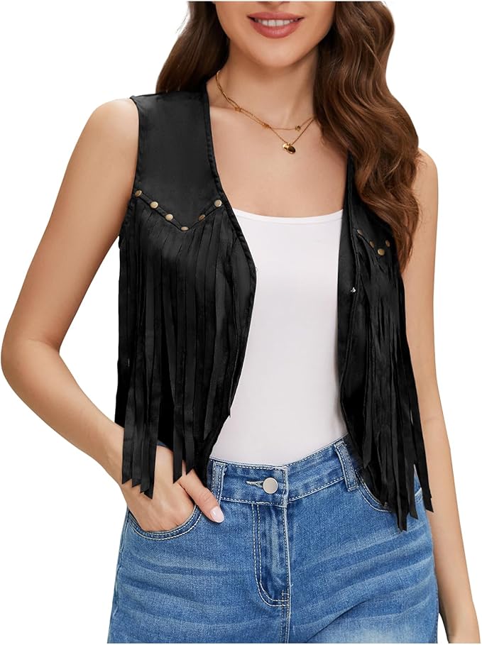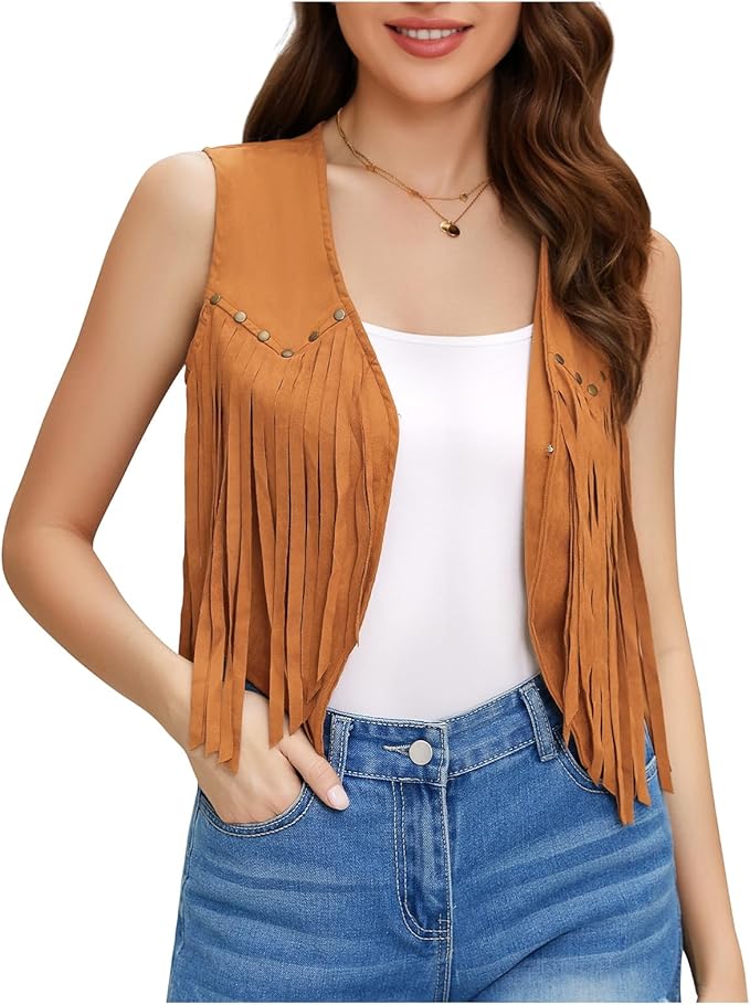 Matching – This western cowgirl fringe top will definitely complete your outfit. Fashion faux suede fringe vest looks great with shirt or sweater, dress, cowgirl cowboy hats and boots.