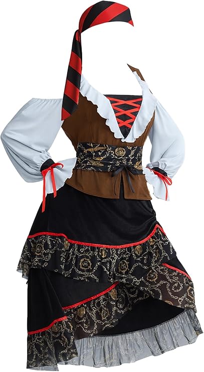 šŖ¢ Complete 2PC Set ā Comes with a pirate dress and matching striped head wrap, giving you a ready-to-wear outfit in one package