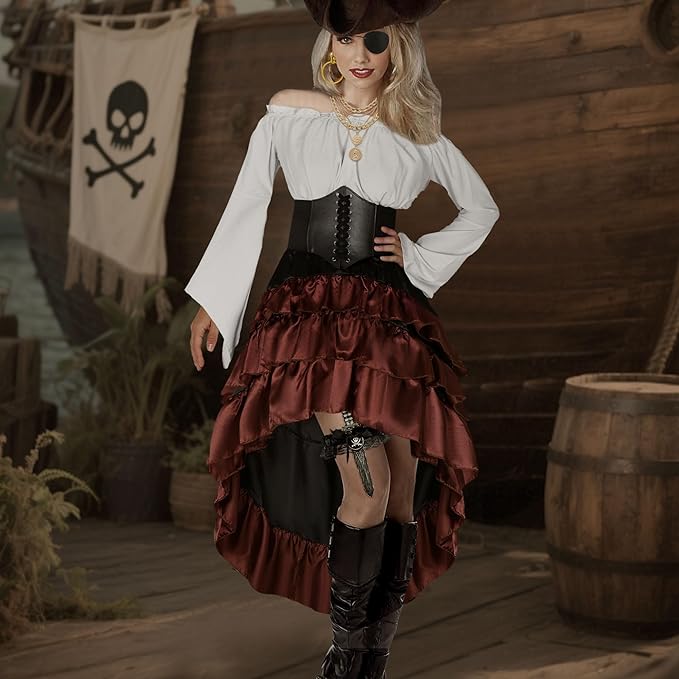 Trusty Material: pirate costume and Skirt are made of quality polyester, soft and smooth to touch, providing you with a comfortable experience, Just pair them with Boots will make you get lots of compliment in pirate themed event such as pirate run, pirate festival and Halloween, etc.