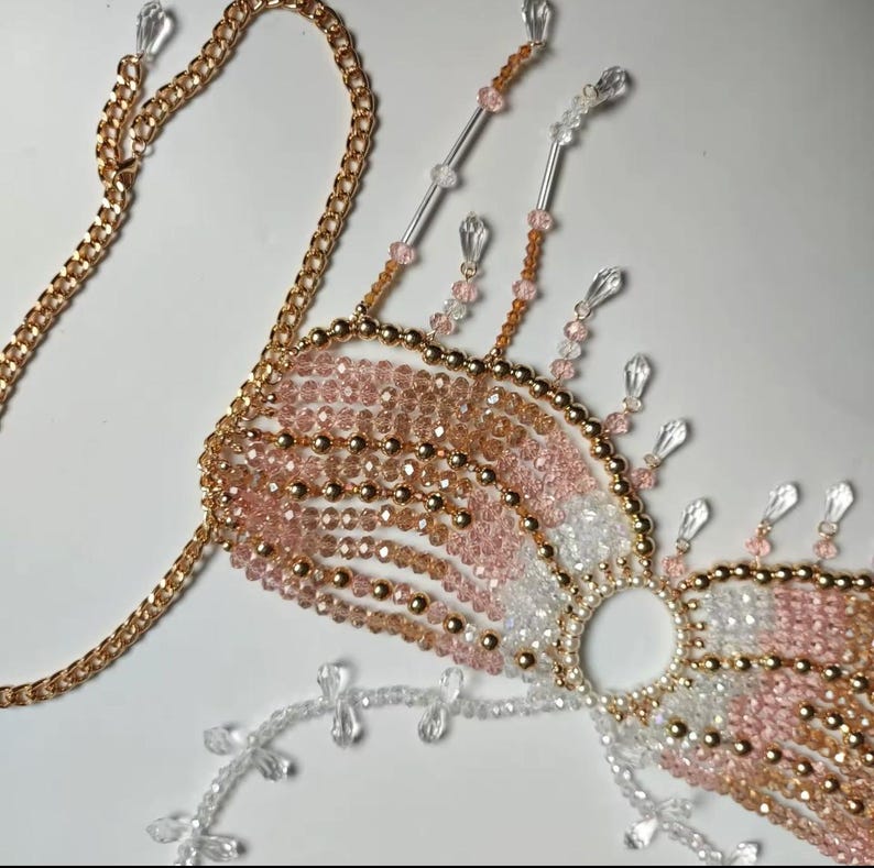 ELEGANT DESIGN: The beaded body chain features multiple layered strands that drape beautifully across the body, creating a stunning cascading effect with gold accent beads interspersed throughout