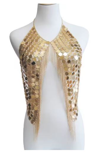 Women’s Festival Bling Plastic Sequined Crop Tops – GOLD