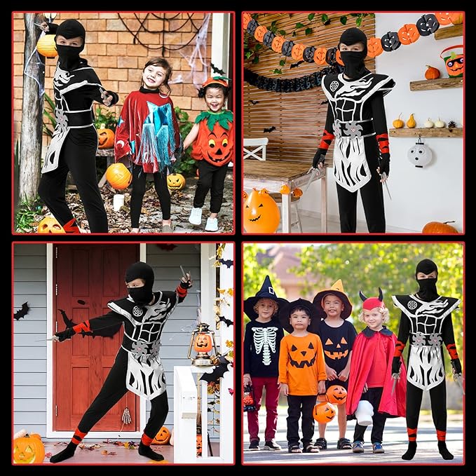 The Ninja set includes Ninja Costume for both Girls and Boy, face mask and a set of Ninja Warrior Play. This is a magical Halloween costumes for kids that can make your children stand out in the Halloween theme party, fully satisfy the kids’ Ninja Role Playing ideas. Such cool Ninja Halloween Costume will definitely make your child irresistible.