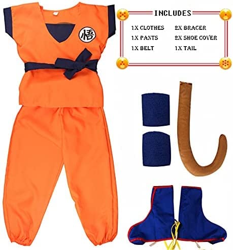 【Package Includes】: The cosplay anime costume six sets outfit includes A cosplay top with a matching pants, a pair of blue foot covers, a blue belt, a pair of wrist guards and a brown tail.
