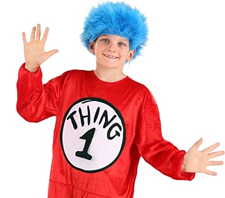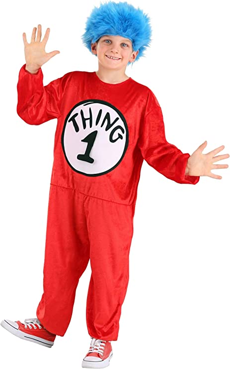 What to do… don’t know whether to be Thing 1 or Thing 2! Now you can be both Thing 1 and Thing 2 and easily alternate between the two with this cool Thing 1 & Thing 2 Kids Costume. One Jumpsuit – Numbers 1 & 2 – Fuzzy Wig. Red Gloves not included but available separately.
