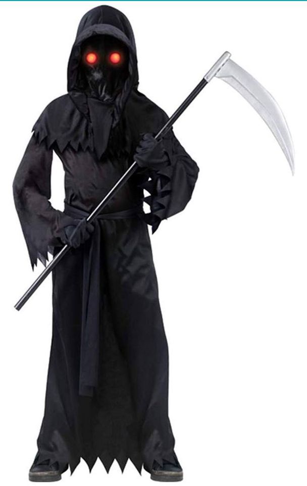 INCLUDES: Robe, Belt, Gloves, Hood, Electronic fade in/out glasses. Requires 3 “AA” Batteries(not included)