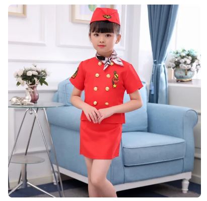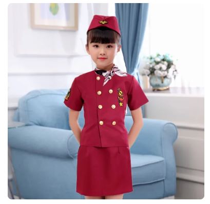 Career Day FLIGHT ATTENDANT – Girls Flight Attendant Costume RED Short Sleeve