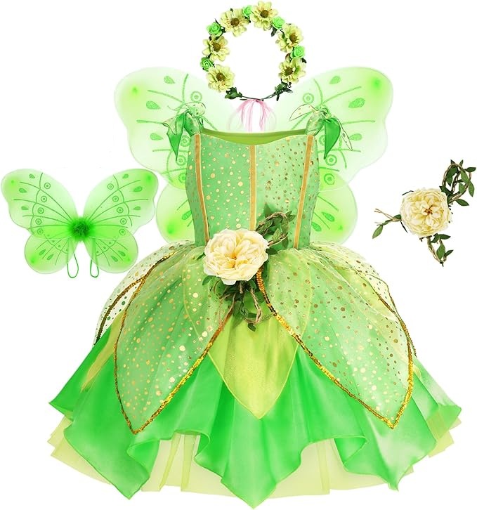 Girls Deluxe Green Tinkerbell inspired Fairy Kids Costume
