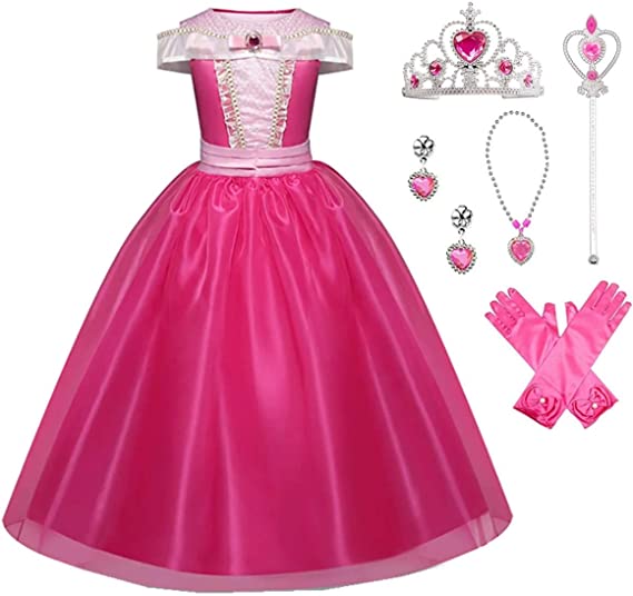 GIRLS Sleeping Beauty Princess Costume Pink Party Dress with Accessories