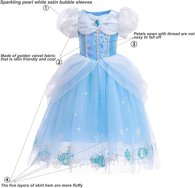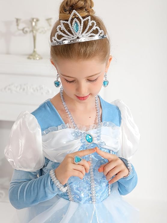 【Package Included】1*Princess Dress, 1*Princess Badge, 1*Crown,1*Ring,1*Pairs of Earrings,1*Butterfly Magic Wand,1*Crystal Necklace1*Pairs of Gloves,7*Pairs of Velvet Sleeves