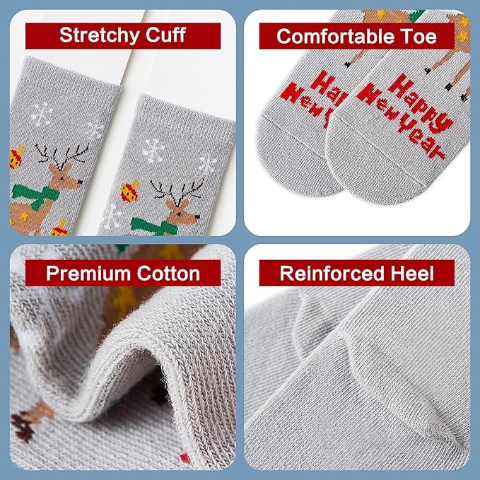 The Christmas socks are made of high-quality cotton blended, which is very soft, comfortable, sweat-wicking, durable and doesn’t deform easily.