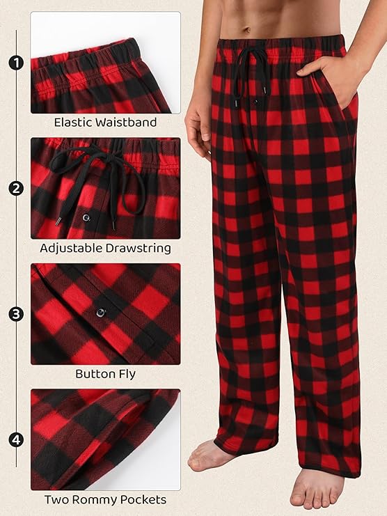 MICRO FLEECE MENS PAJAMA PANTS: Men plaid pajama pants are made of soft micro fleece material. Lightweight and breathable material provides ultimate warmth, guaranteeing dryness throughout the night