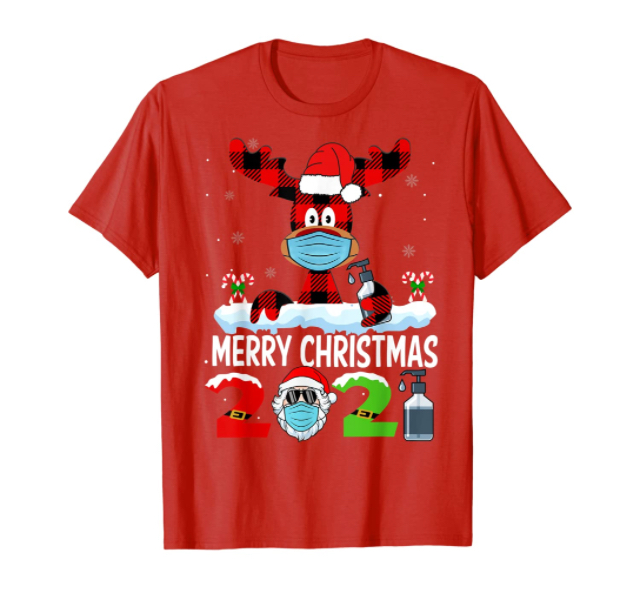 A Funny T Shirt Of Santa’s Reindeer Wearing His Cut Facemask. Perfect Christmas Outfit Christmas 2020 Gift, A great gift idea for your family or friend for this Xmas.
