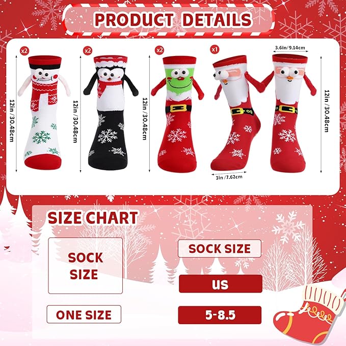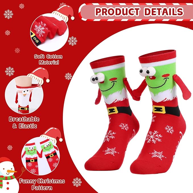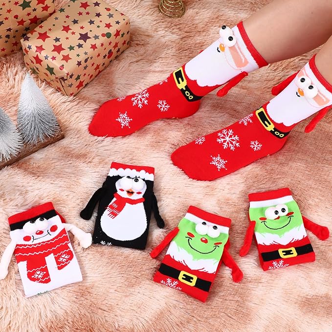 SOCKS – Funny Magnetic Hand Holding Snowflake Socks for Women Men ONE SIZE