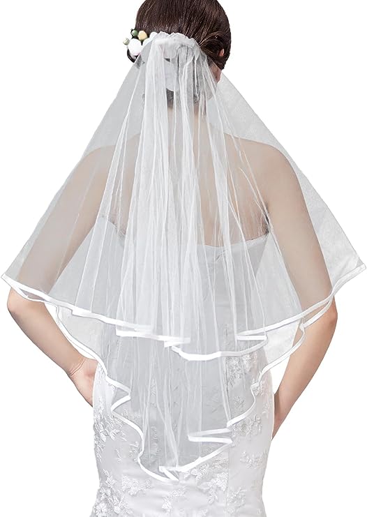 Women’s 2 Tier Short Bridal Veil Bachelorette/Communion Veil with Comb (White)