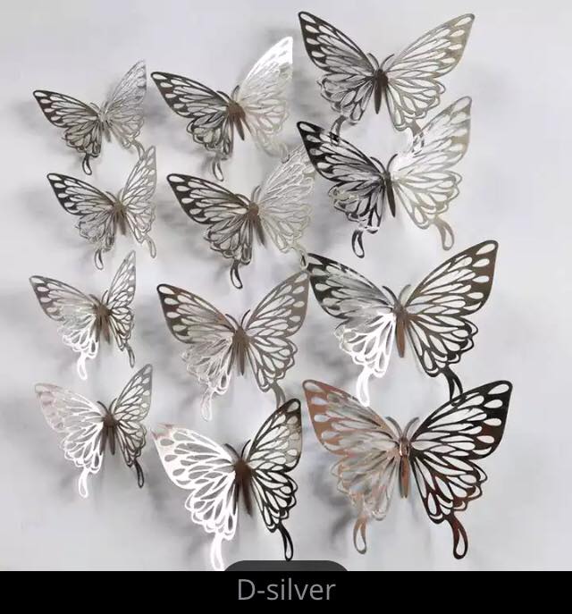 12Pcs/lot 3D Hollow Silver Butterfly Wall Stickers