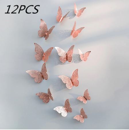 Butterfly Wall Sticker Decoration 3D (Single Layer) – Reflective Crystal Butterfly ROSE GOLD (V)