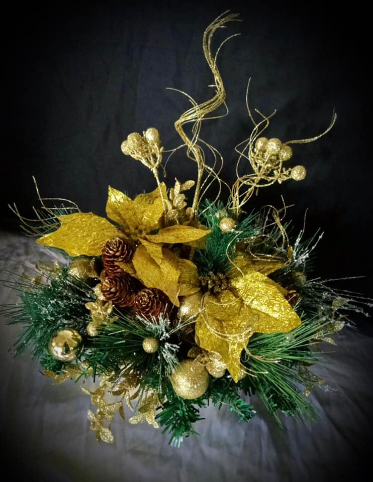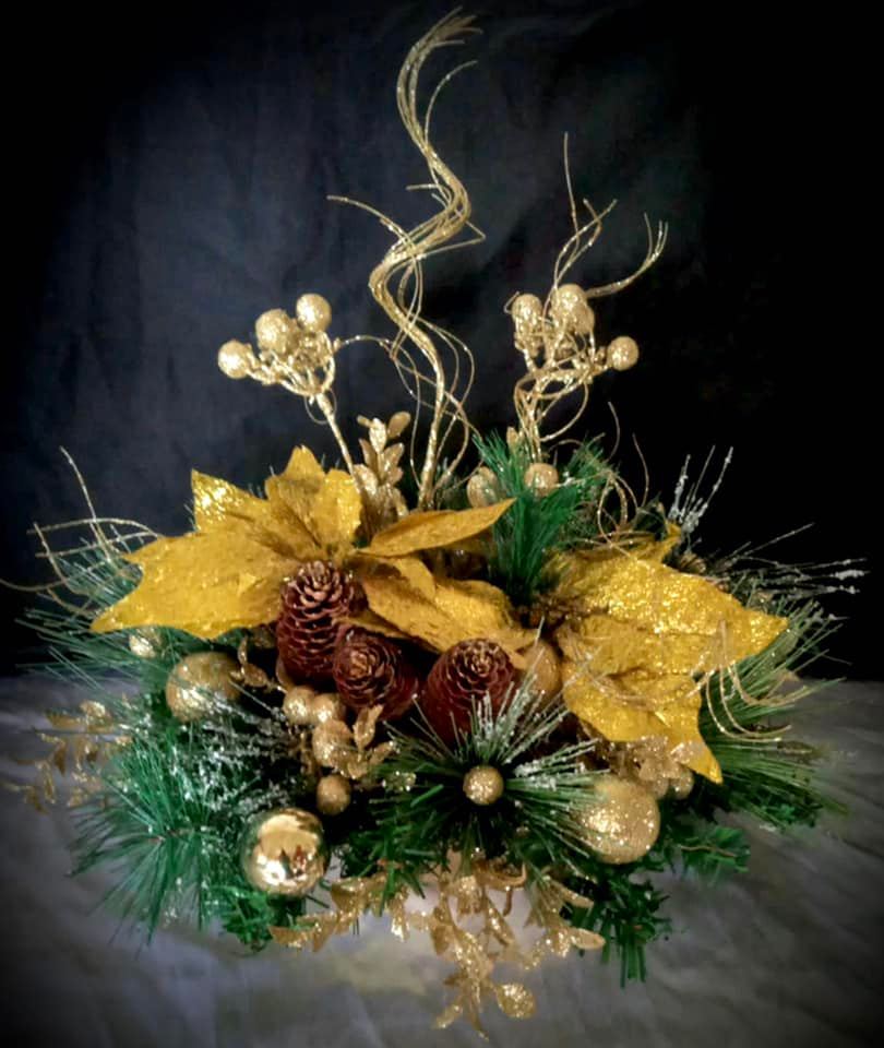 Custom made Gold Poinsettia decorated Christmas centerpiece by DanChes Creative Designs.