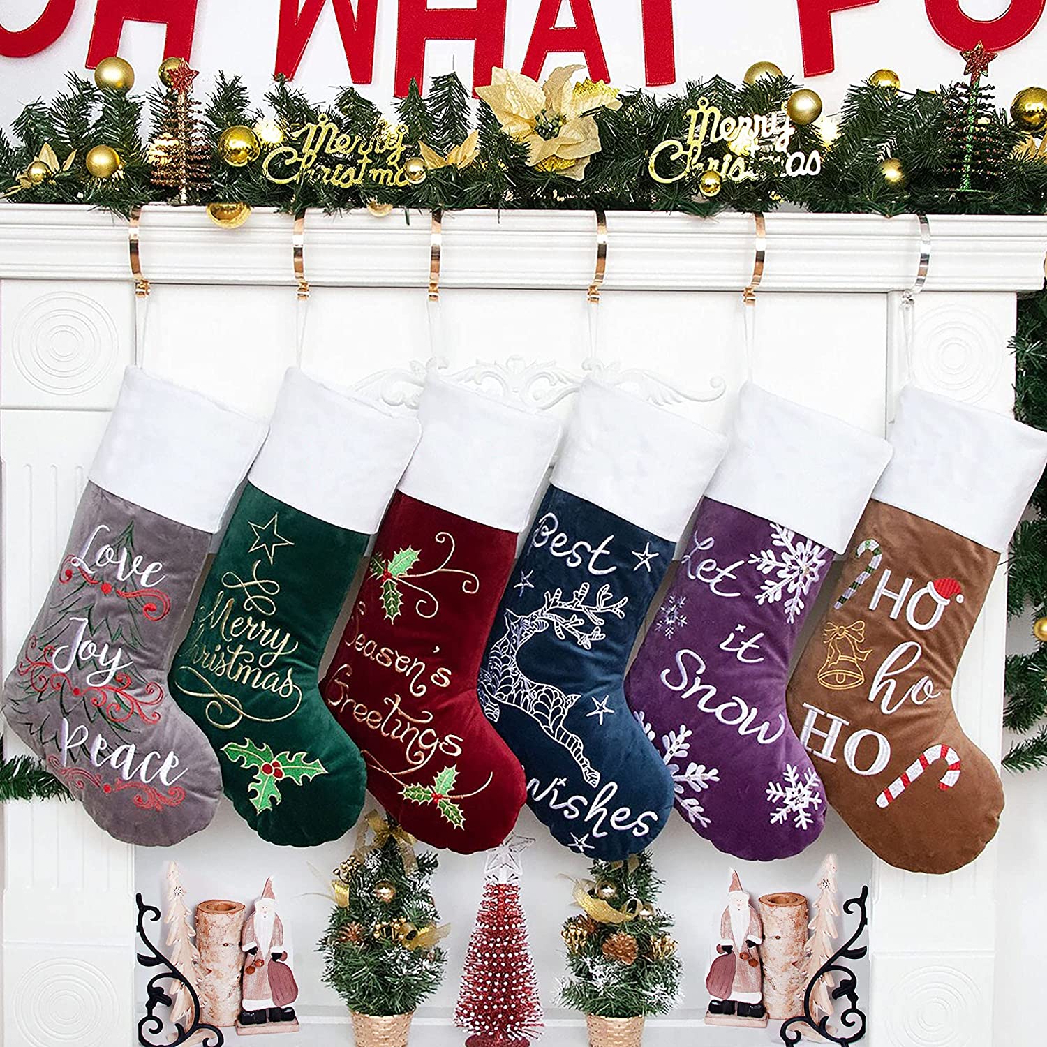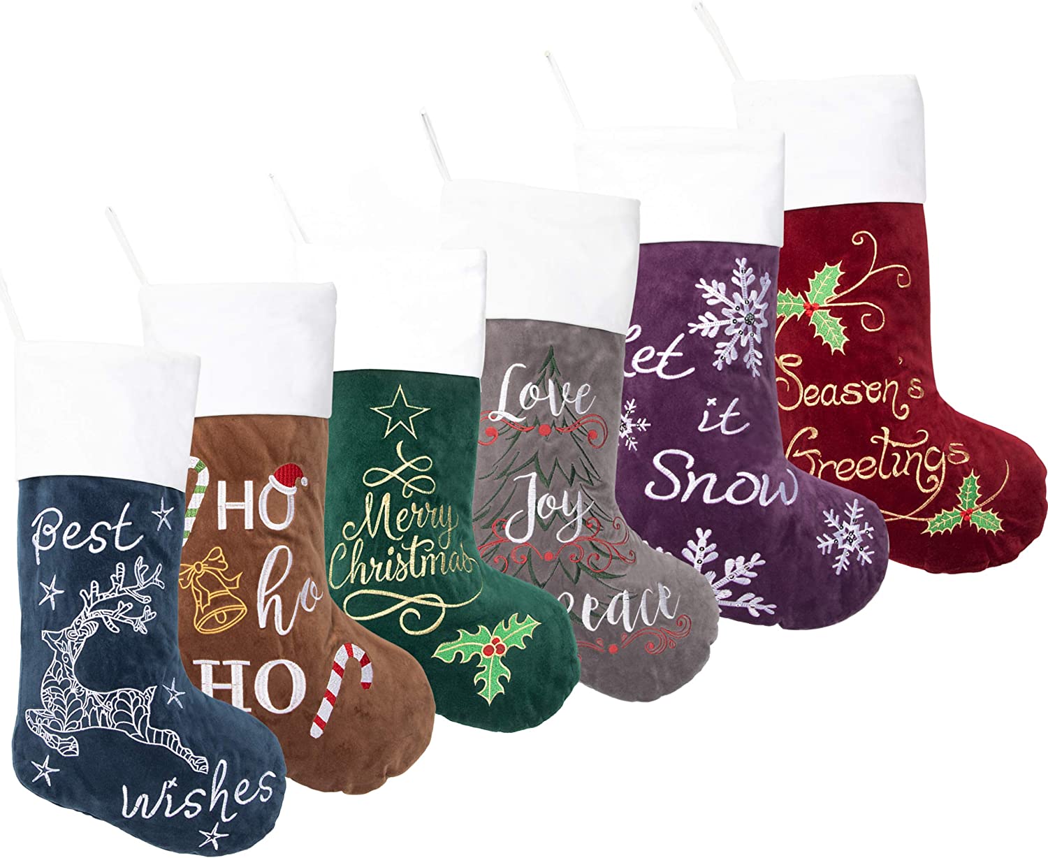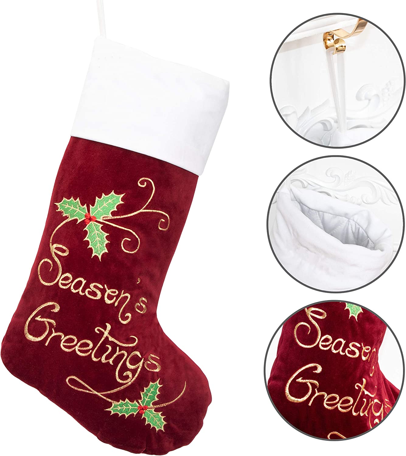 Christmas Decoration Hanging STOCKNIGS – 22″ Large Quilted Lining Embroidery Velvet Stockings