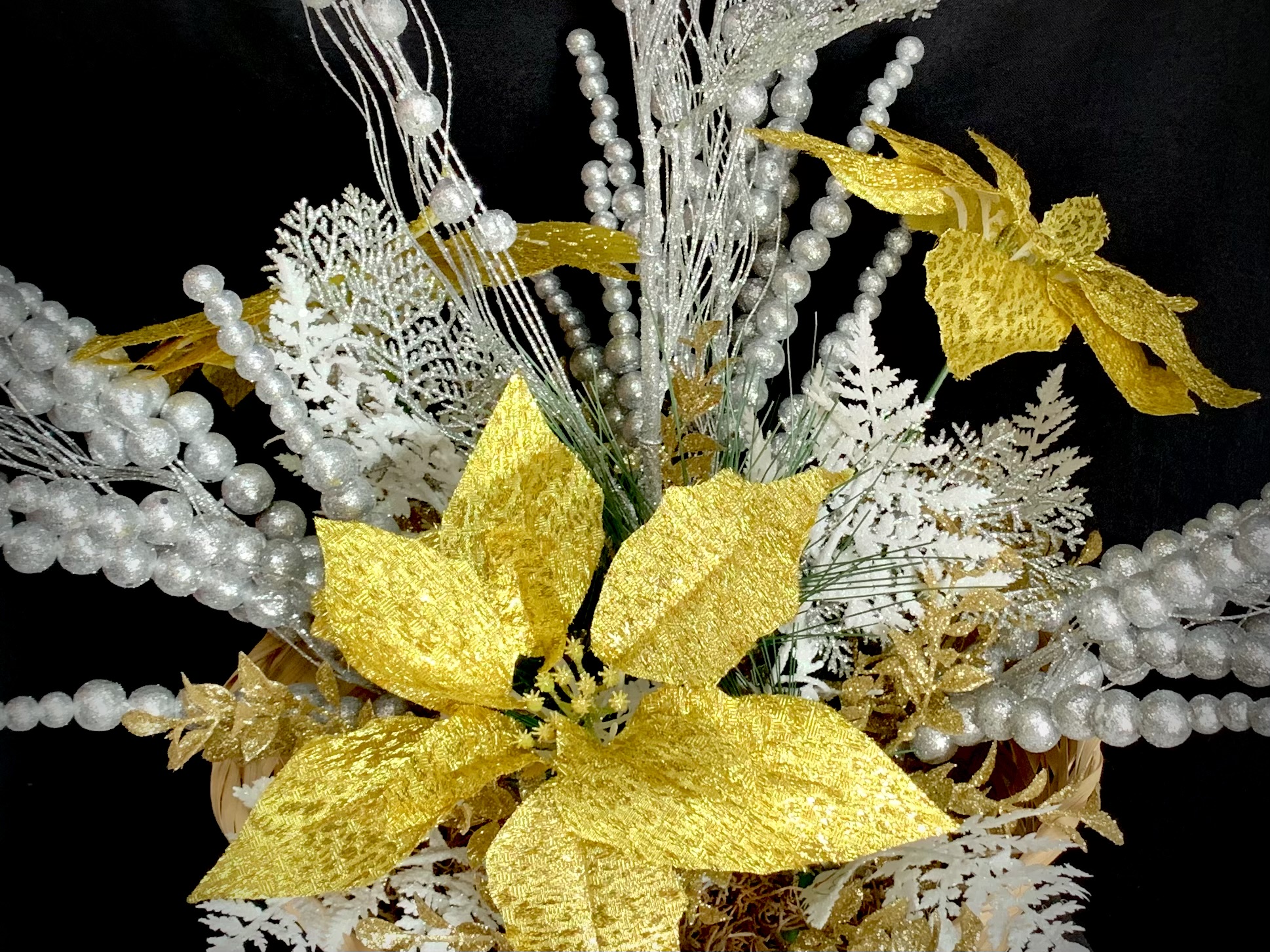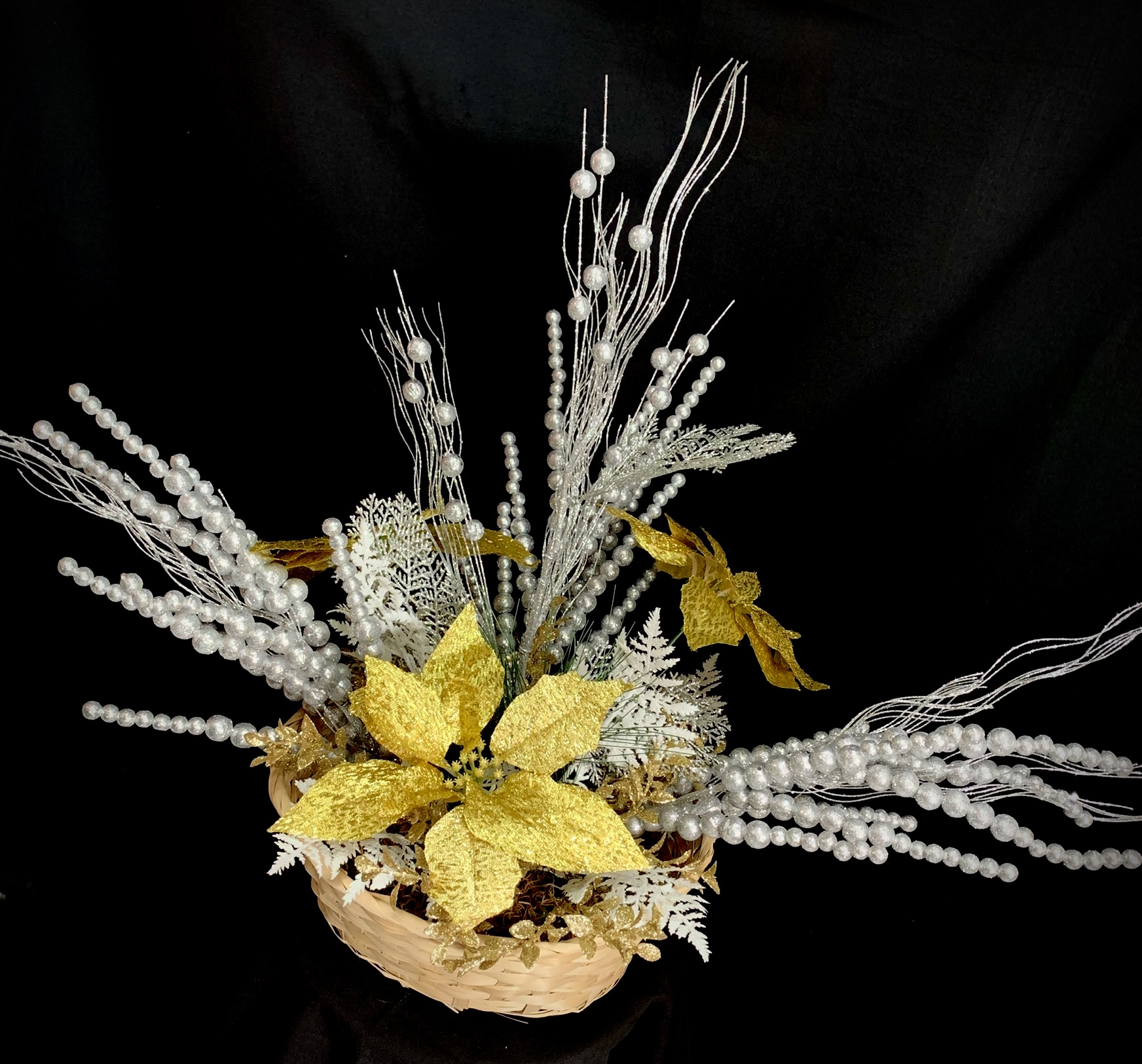 Christmas Decoration – Centerpiece – Sparkling Bubbly, Christmas floral basket arrangement