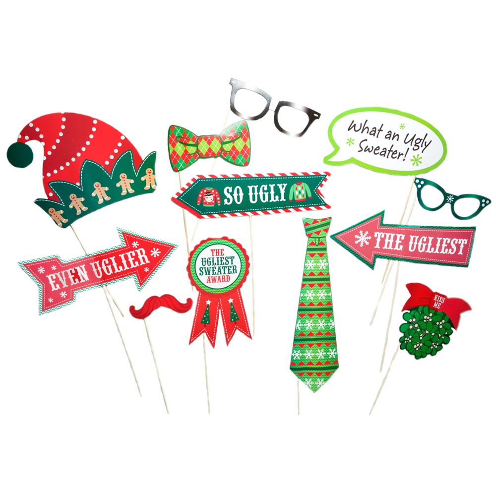 Paper Christmas Conversation Bubble Party Photo Picture Booth Prop Sticks – 12 pieces