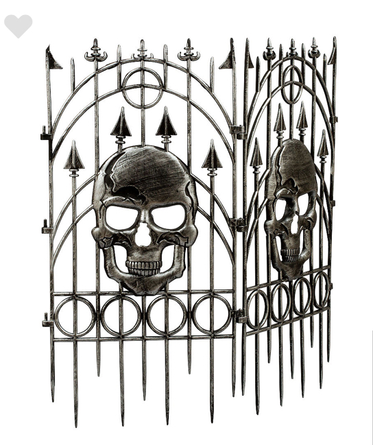 Skull Fence features a large skull in the center of brushed silver looking fence with arrow detailing. Skull fence measures 36in.