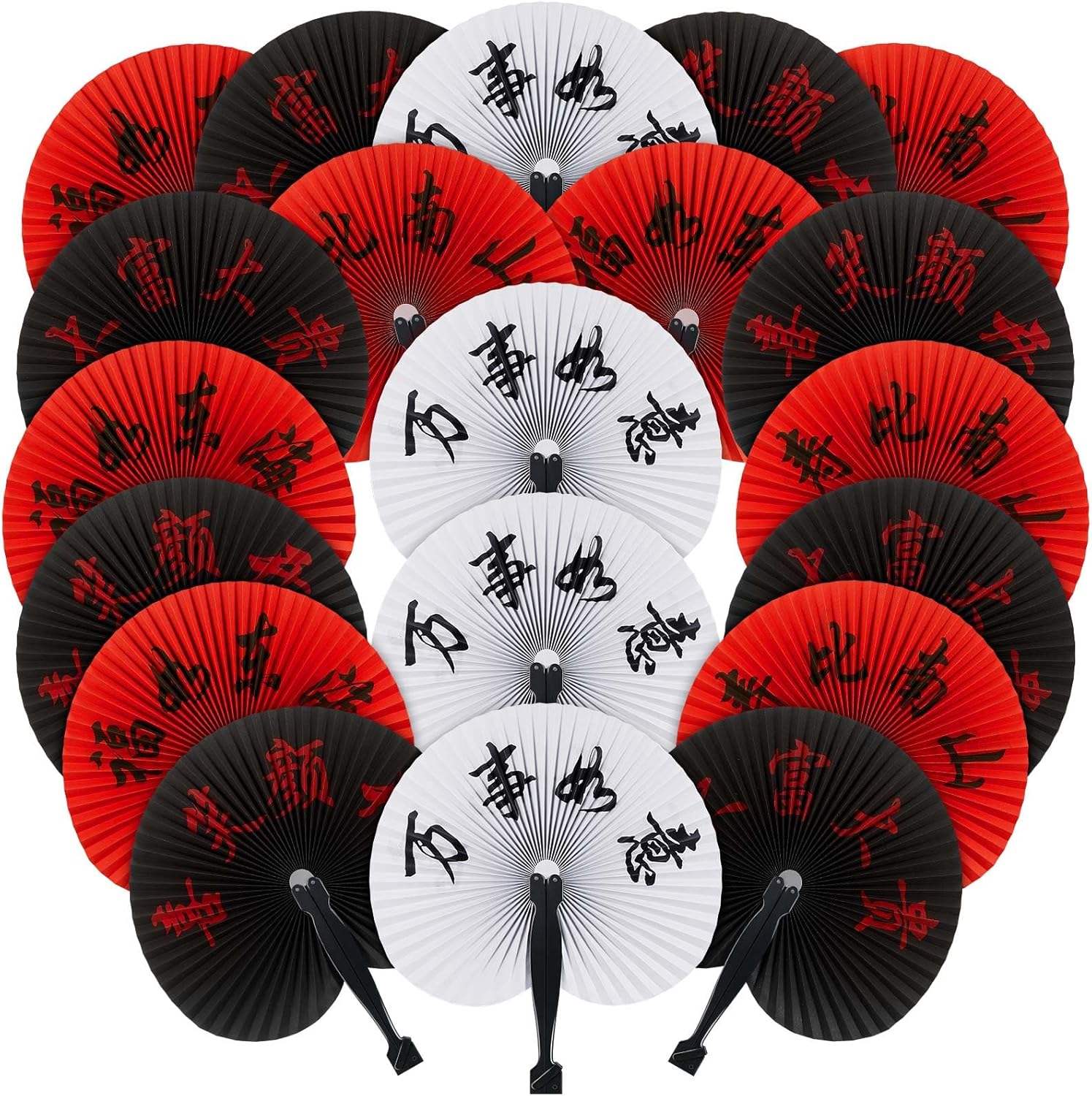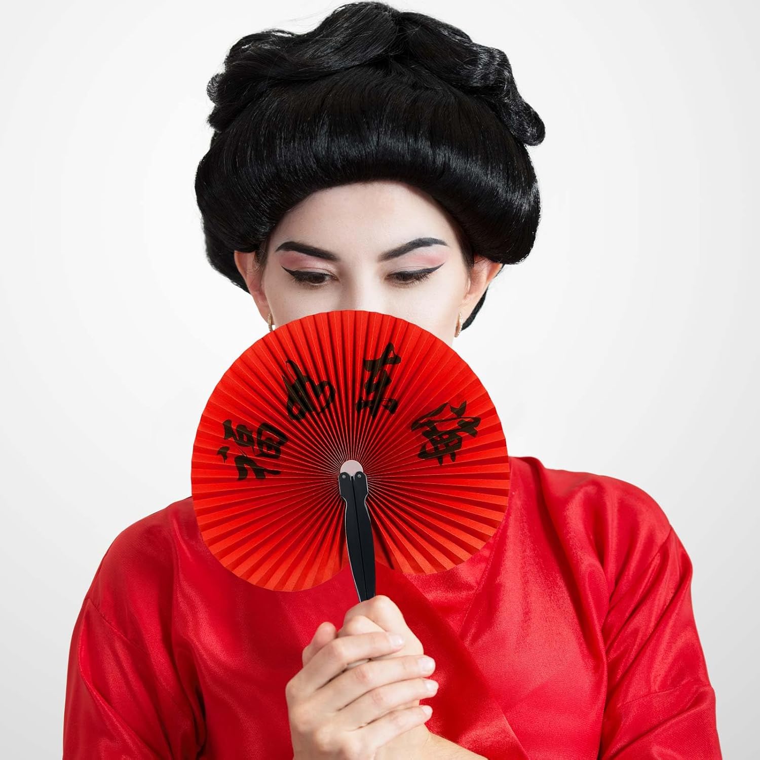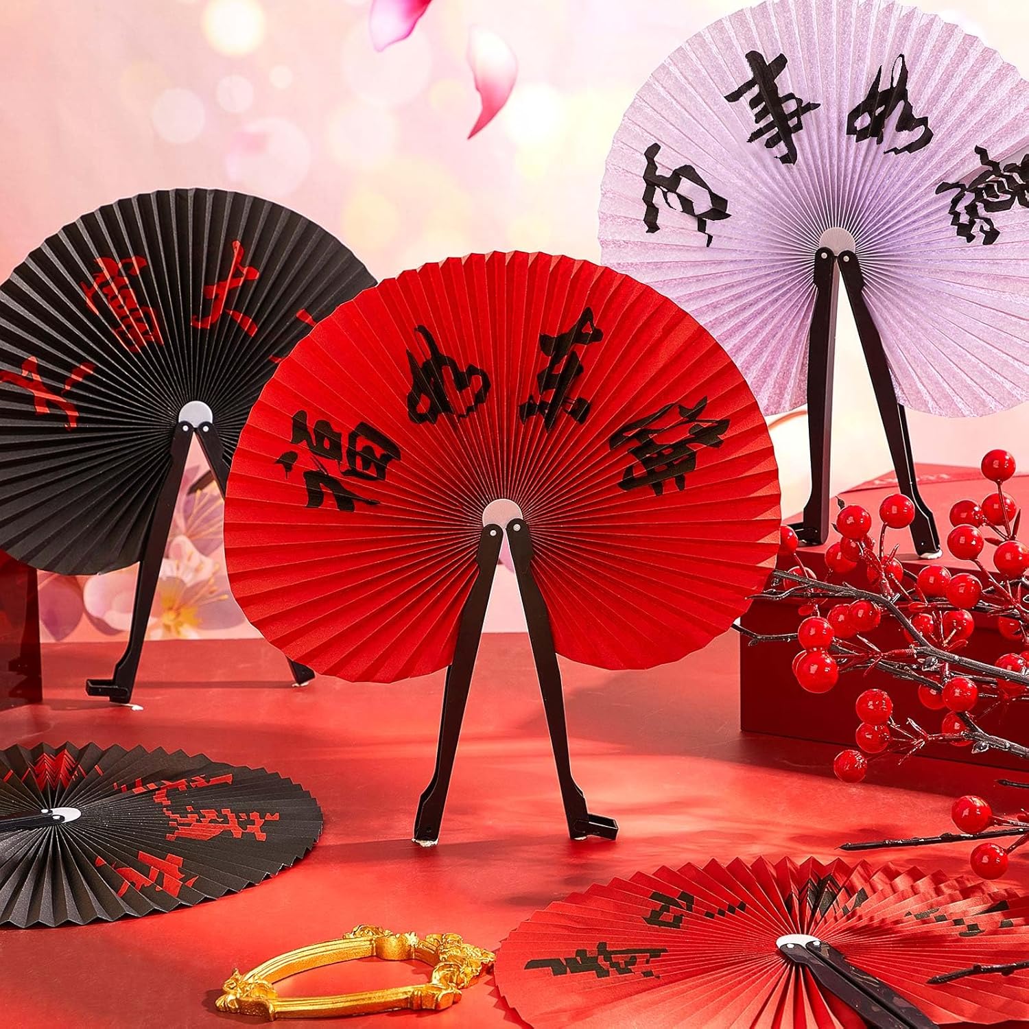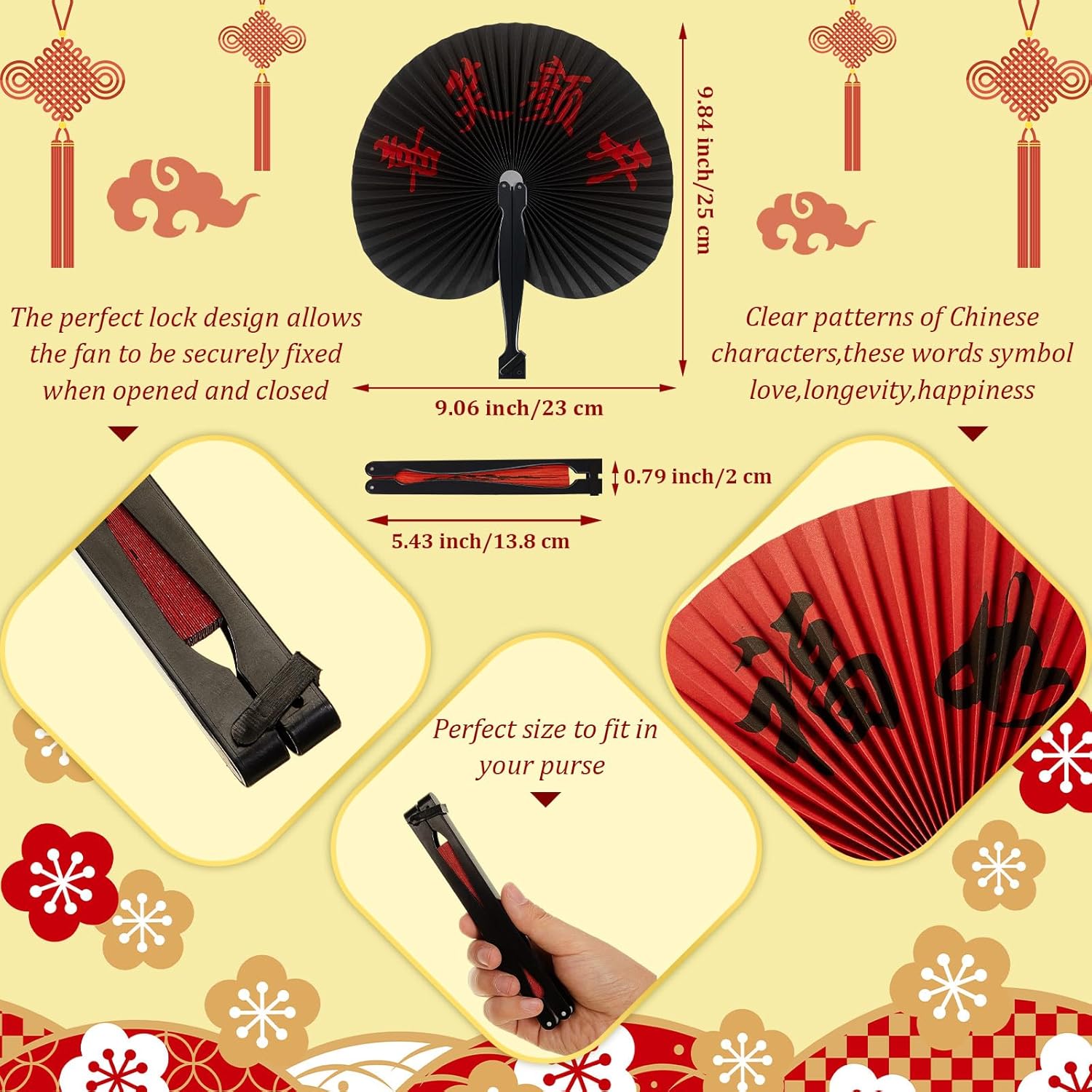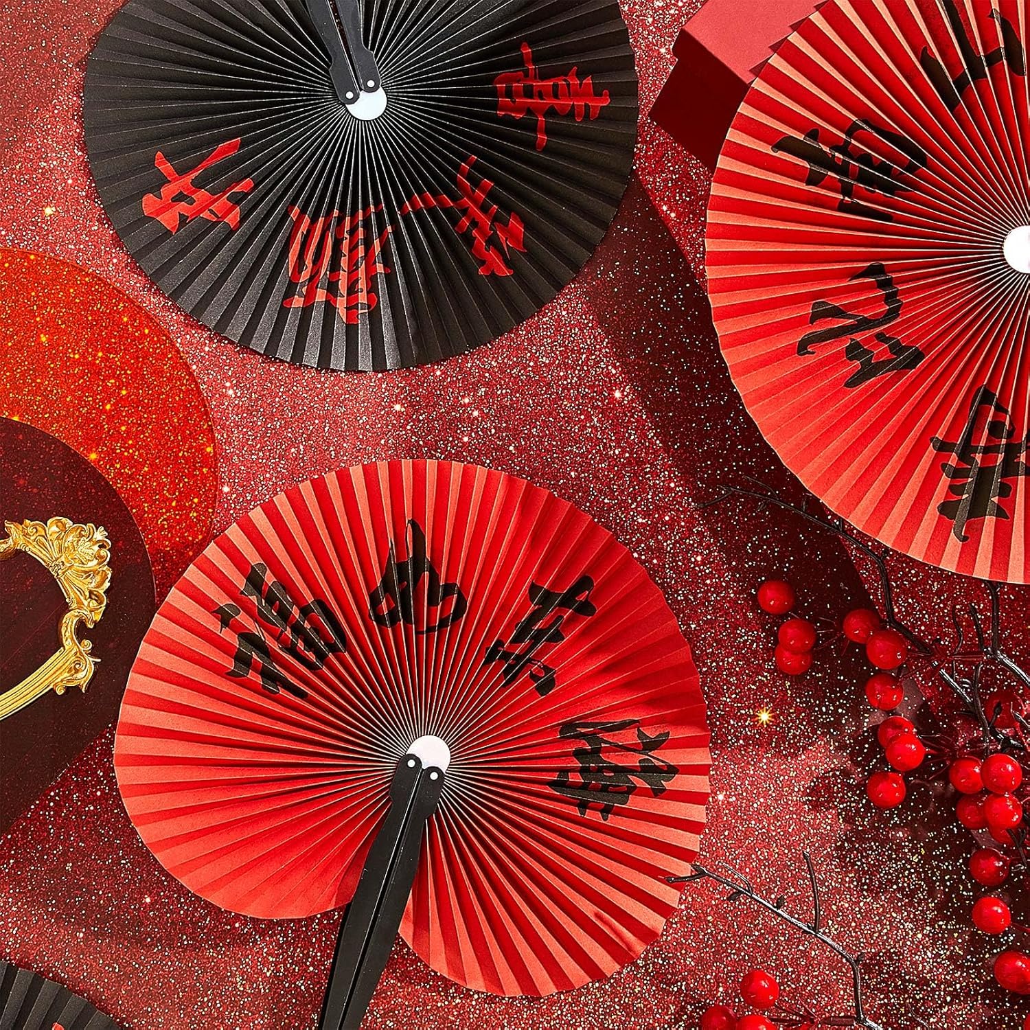 Handheld folding paper fans adopt traditional Chinese characters and styles, will add stronger festival atmosphere into your parties and events, and could decorate your themed party more attractive; Simple yet novel design can be combined with other party decorations for a wonderful look